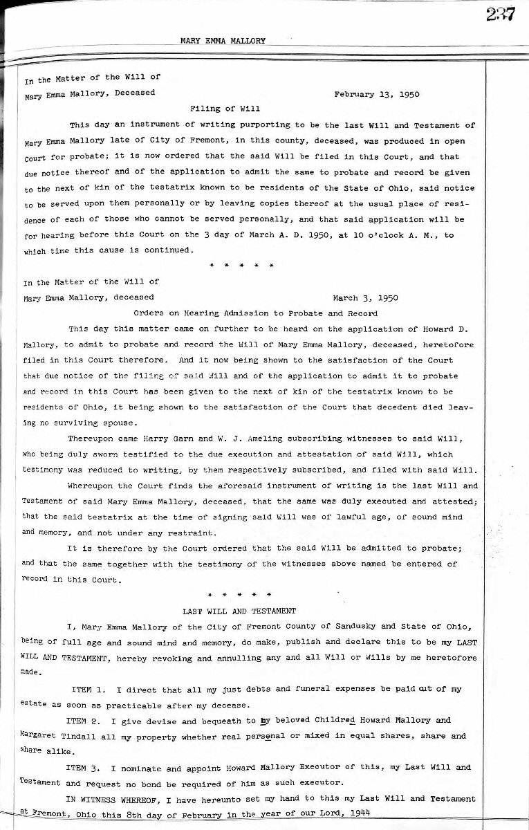 Died: February 04, 1950 in Fremont, Sandusky County, Ohio.