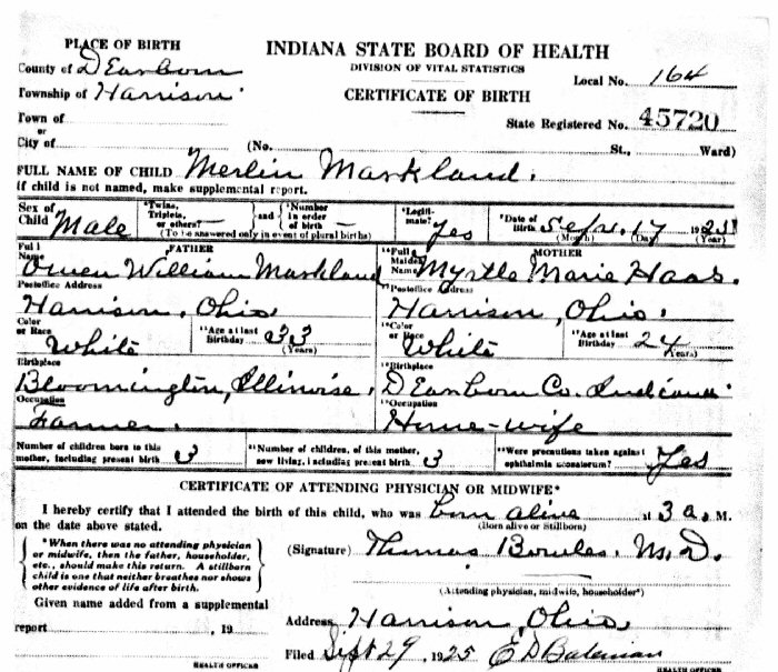 Son of Owen William and Mrytle Marie (Haas) Markland