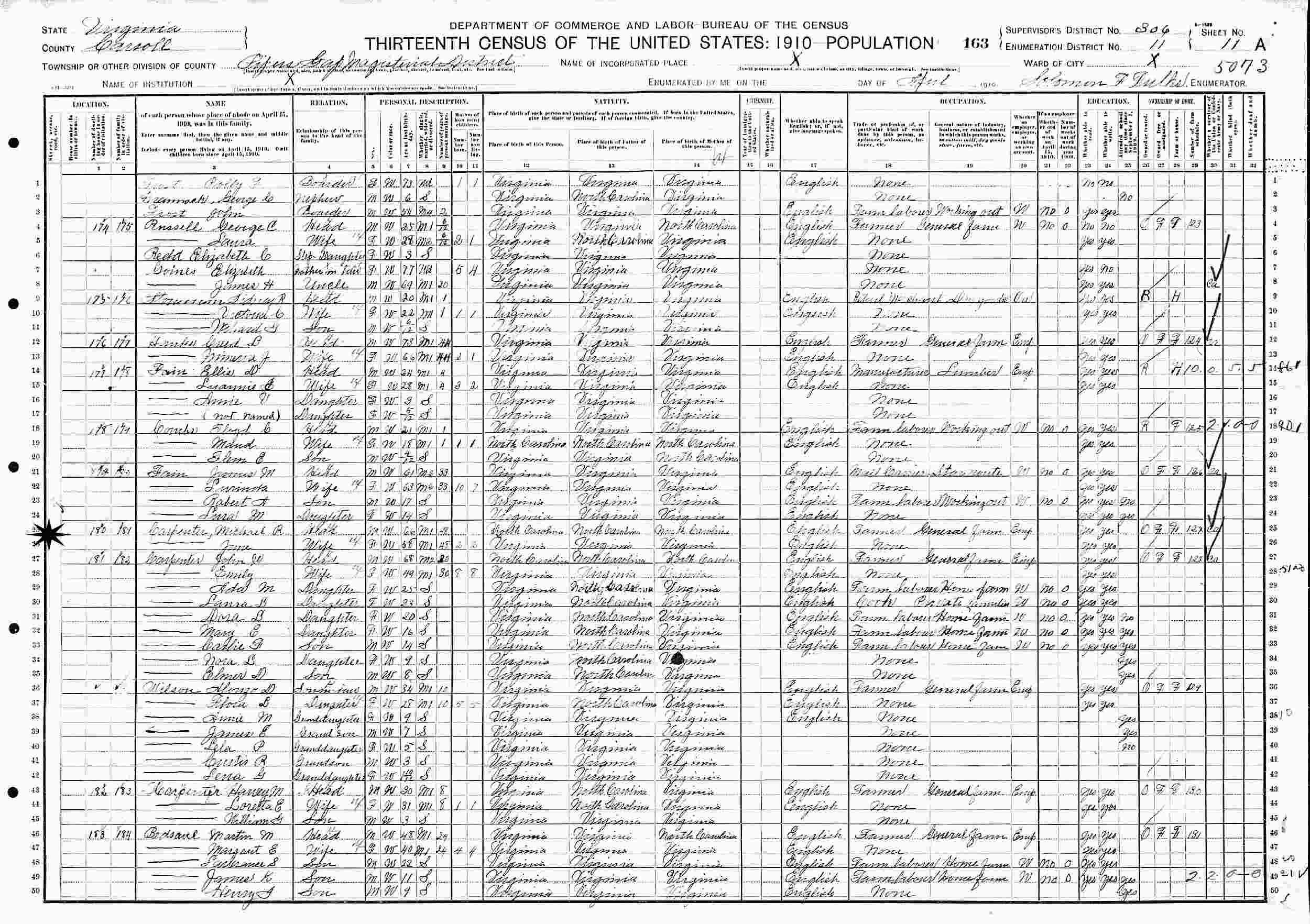 April, 1910 - Pipers Gap District, Supervisor's District 306, Enumeration District 11, Carroll County, Virginia.