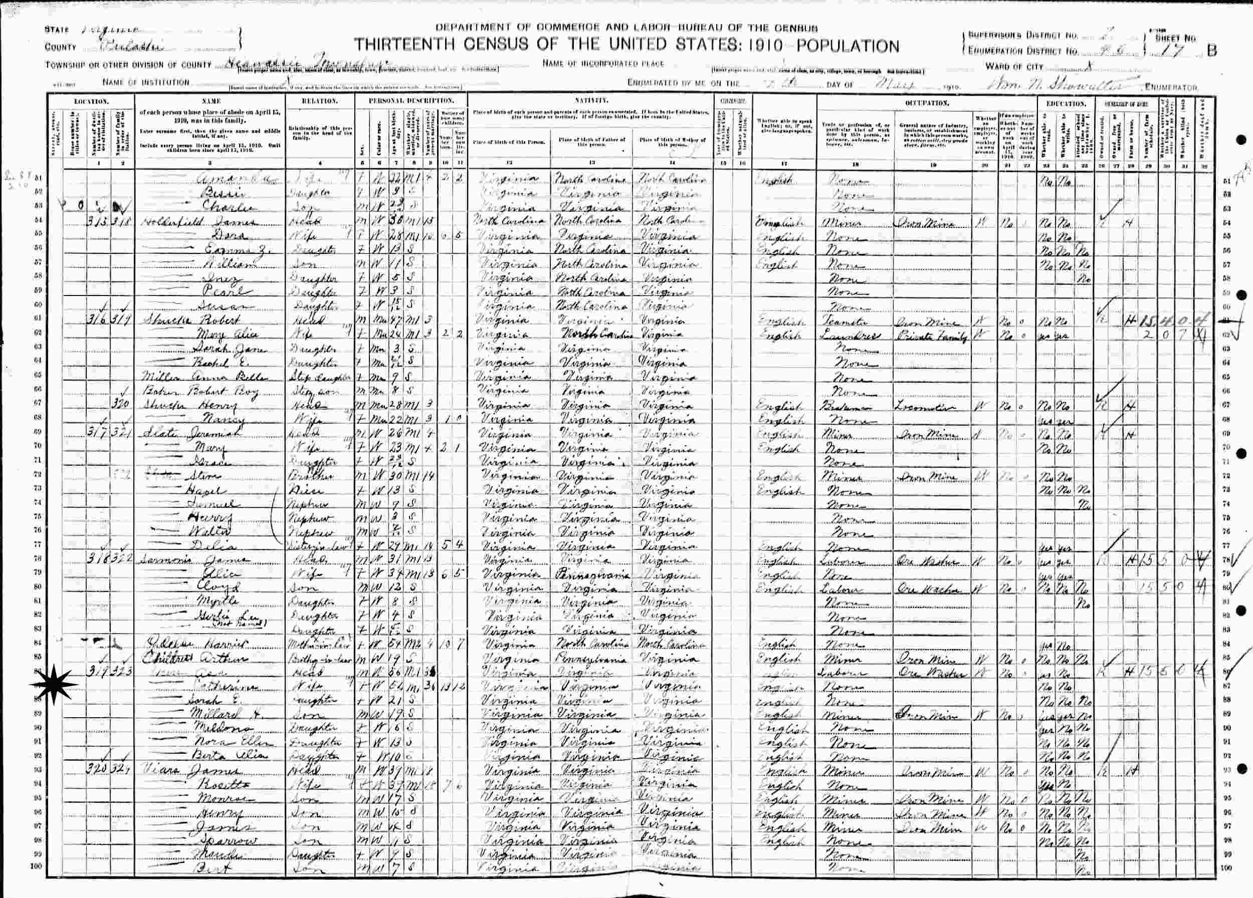 June 9, 1910 - Supervisor's District 9?, Enumeration District 46?, Hiawassie Township, Pulaski County, Virginia.