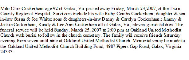 Died: March 23, 2007 in Galax, Virginia.