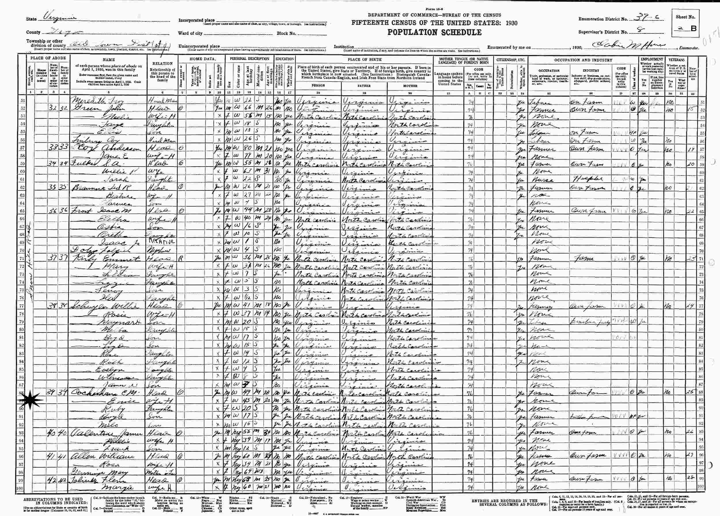 1930 - Snow Hill Road, Old Town District, Supervisor's District 8, Enumeration District 39-6, Grayson County, Virginia.