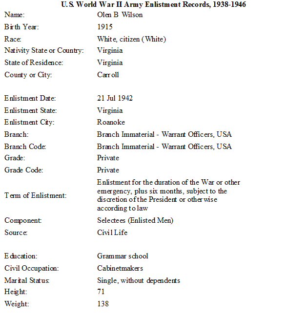 Military Service: July 21, 1942 - November 15, 1945 - WWII - U.S. Army.