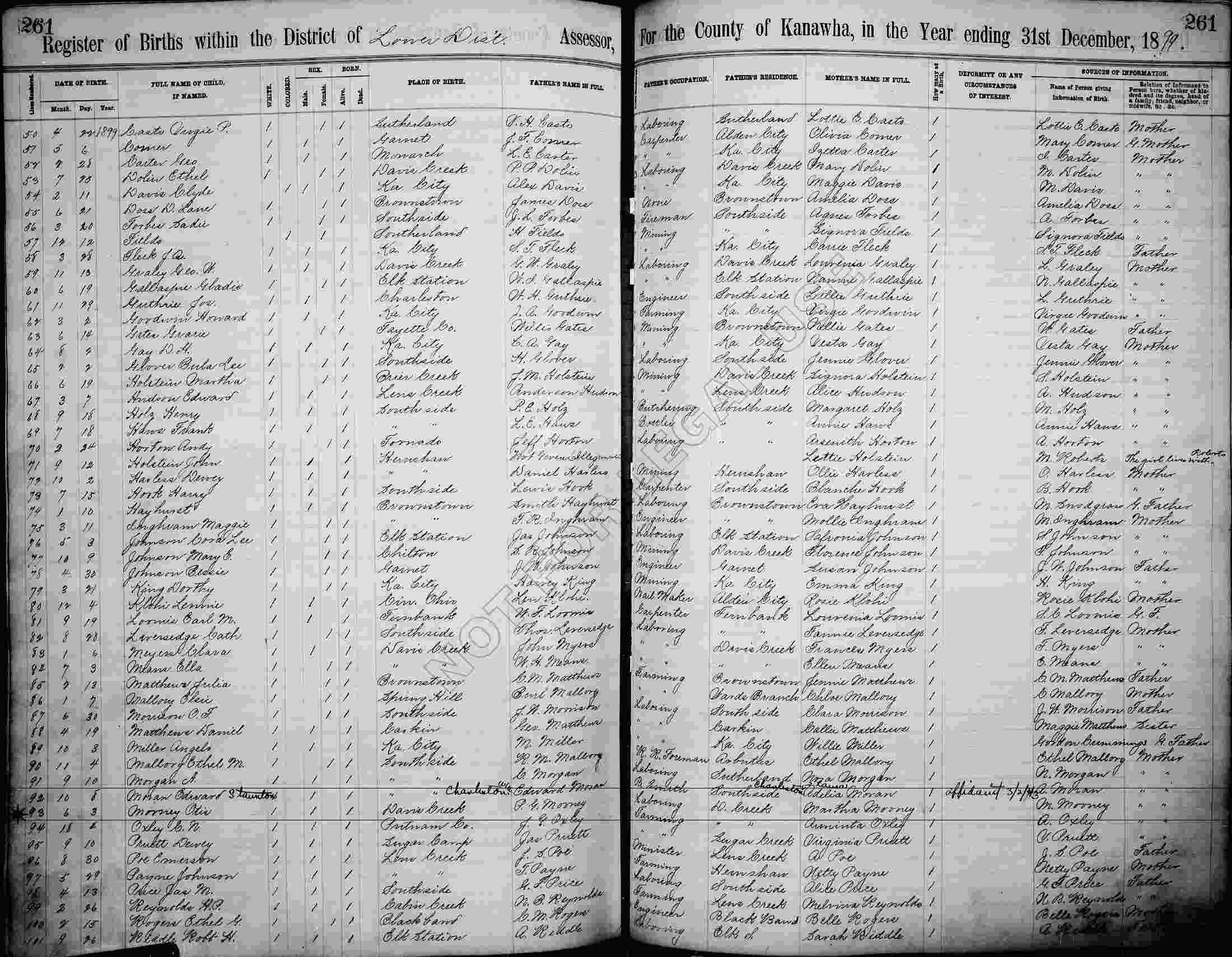 Born: June 03, 1899 in Davis Creek, Kanawha County, West Virginia.