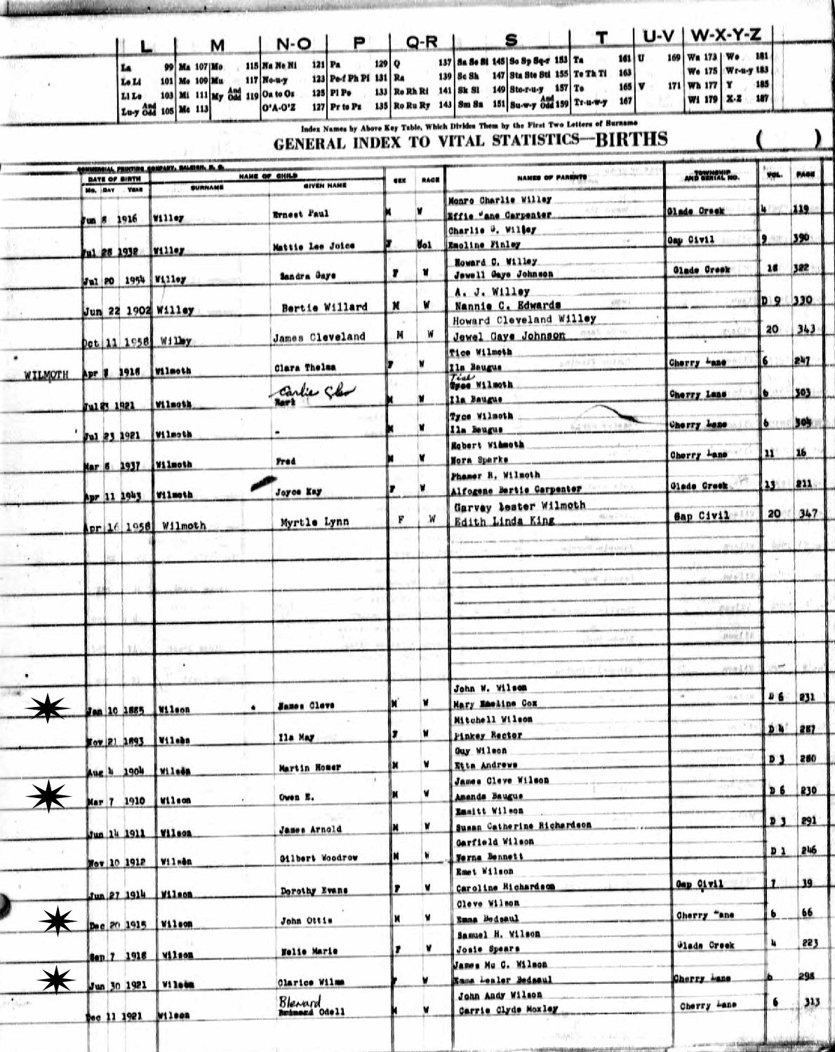 Son of James McCleveland "Cleve" and Emma Learer (Bedsaul) Wilson.