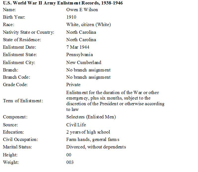 Notes for OWEN E WILSON: