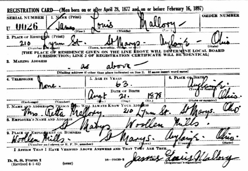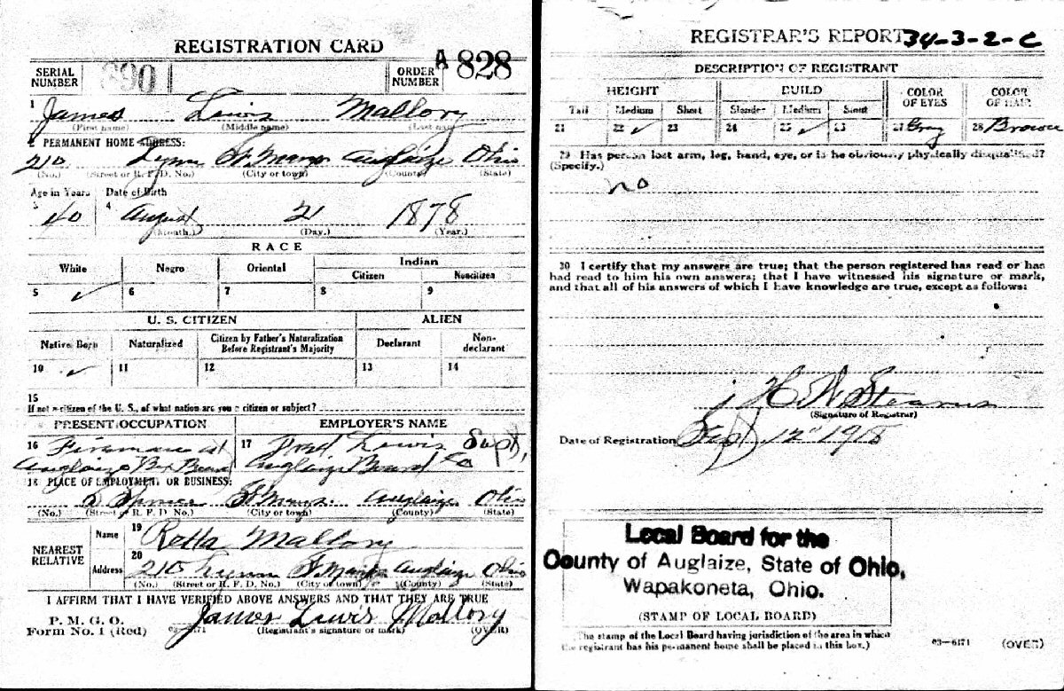 September 12, 1918 - 210 Lynn St., St. Marys, Auglaize County, Ohio.