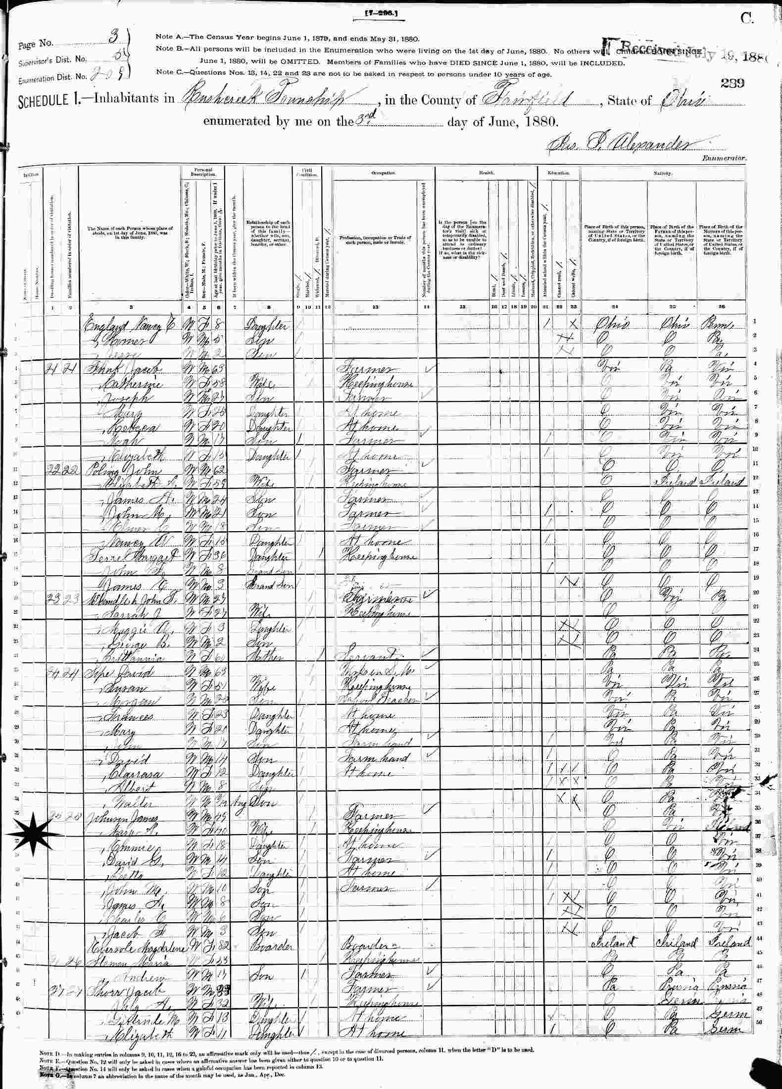 June 3, 1880 - Supervisor's District 5, Enumeration District 209, Rush Creek, Fairfield County, Ohio.