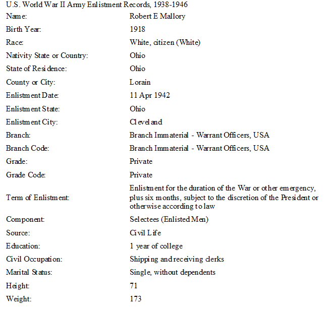 Military Service: Enlistment - April 11, 1942 - WWII - U.S. Army.