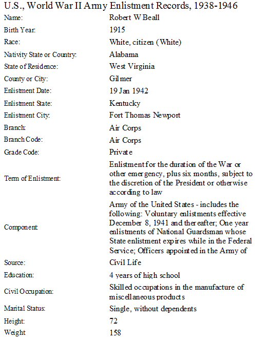 Military Service: January 19, 1942-October 25, 1945 - WWII - U.S. Army Air Corps.