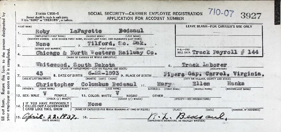 Notes for ROBY LAFAYETTE BEDSAUL: