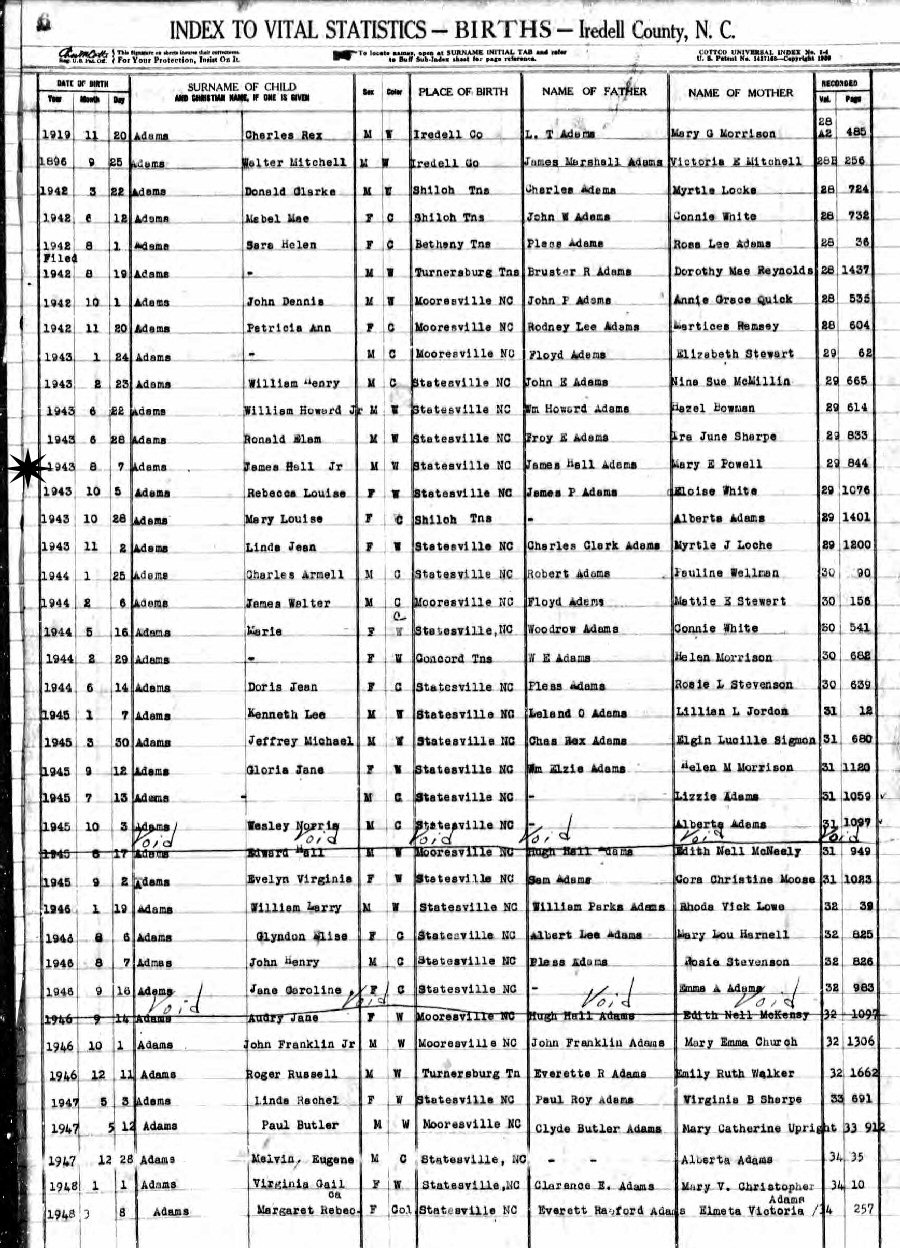 Born: June 28, 1943 in Iredell County, North Carolina.