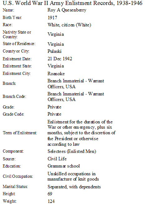 Born: June 30, 1917 in Pulaski County, Virginia.