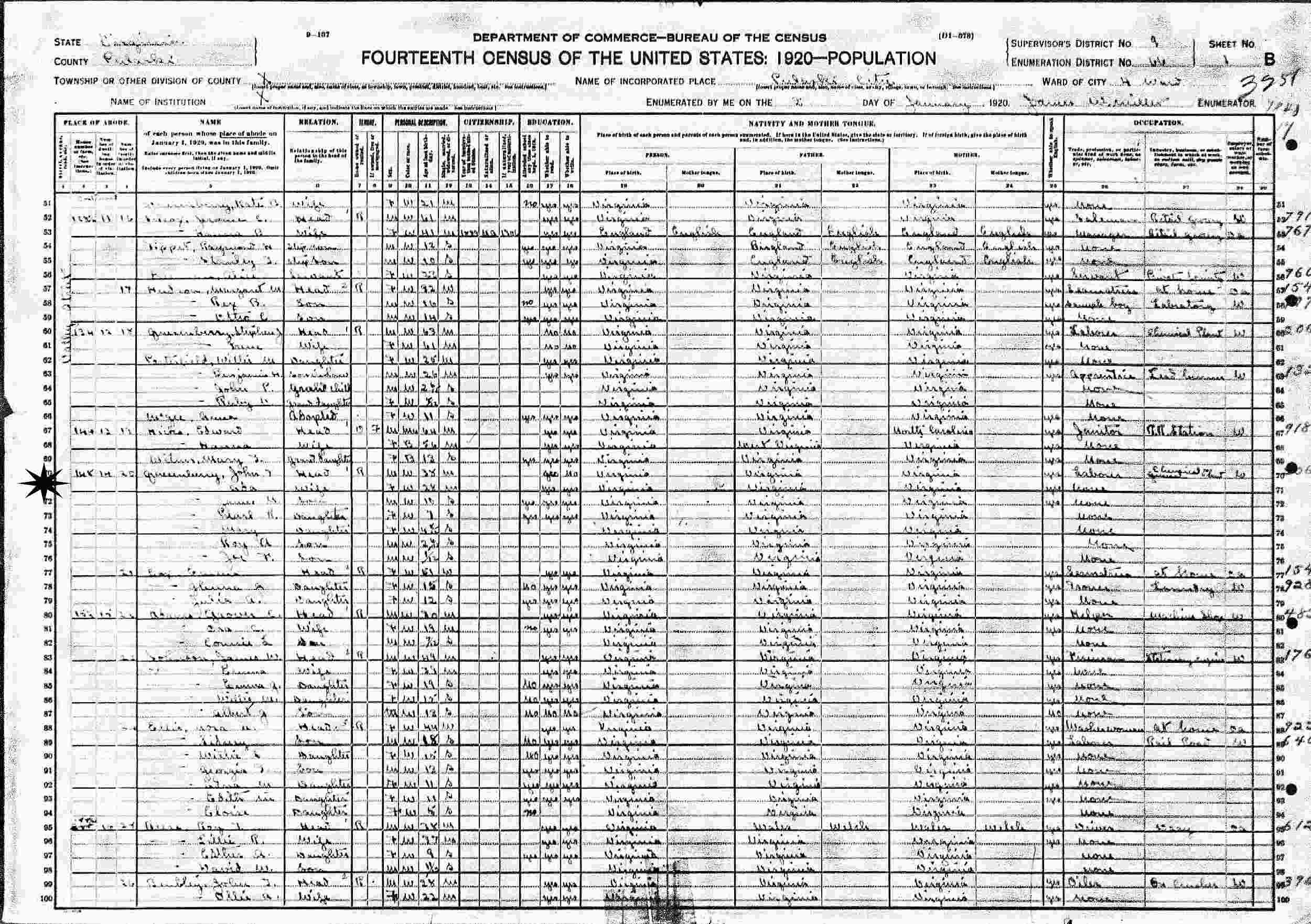 January 2, 1920 - 148 Valley Street, Ward 4 West, Supervisor's District 9, Enumeration District 66, Pulaski, Pulaski County, Virginia.