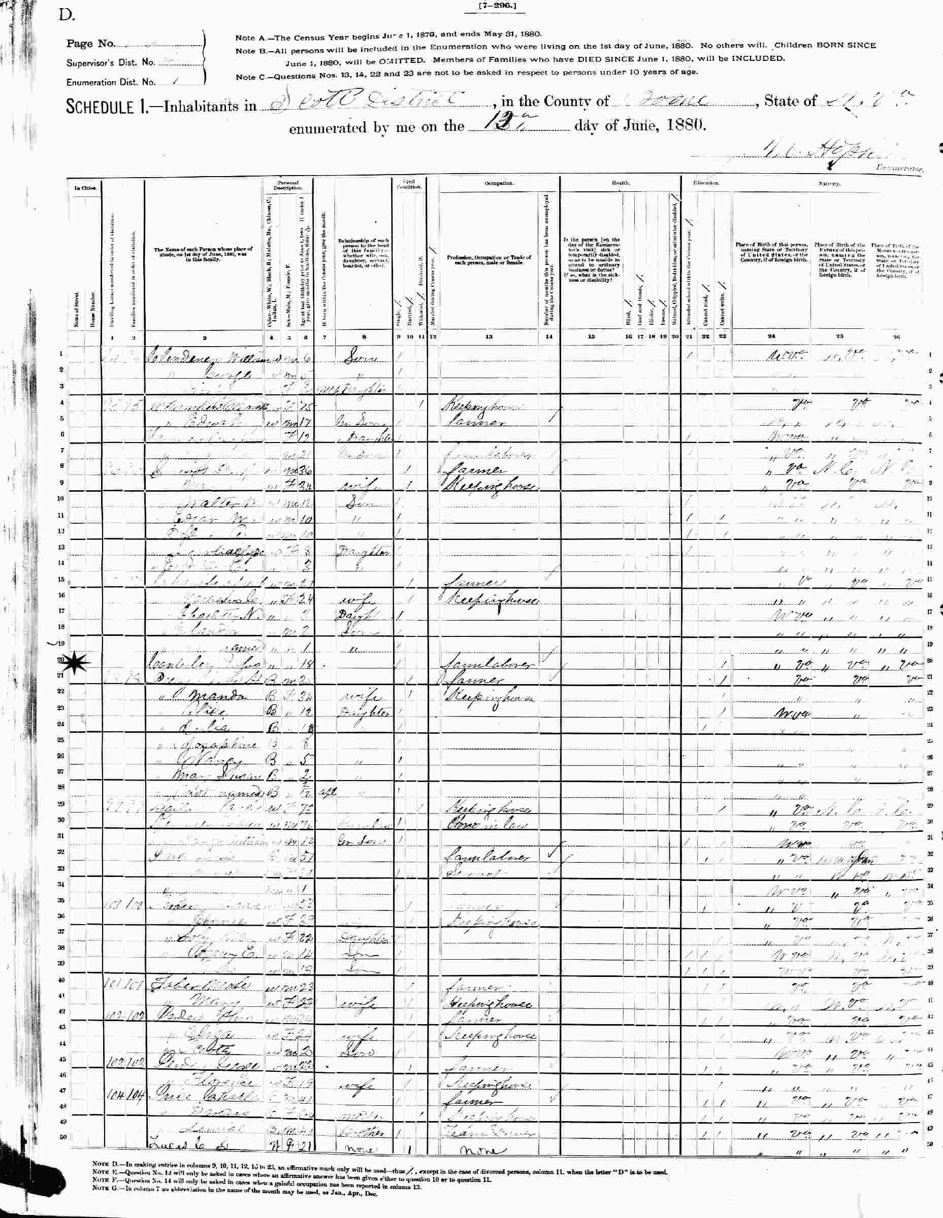 June 13, 1880 - Supervisor's District 4, Enumeration District 1,Scott District, Boone County, West Virginia.