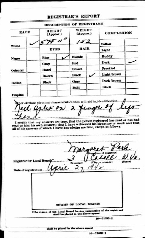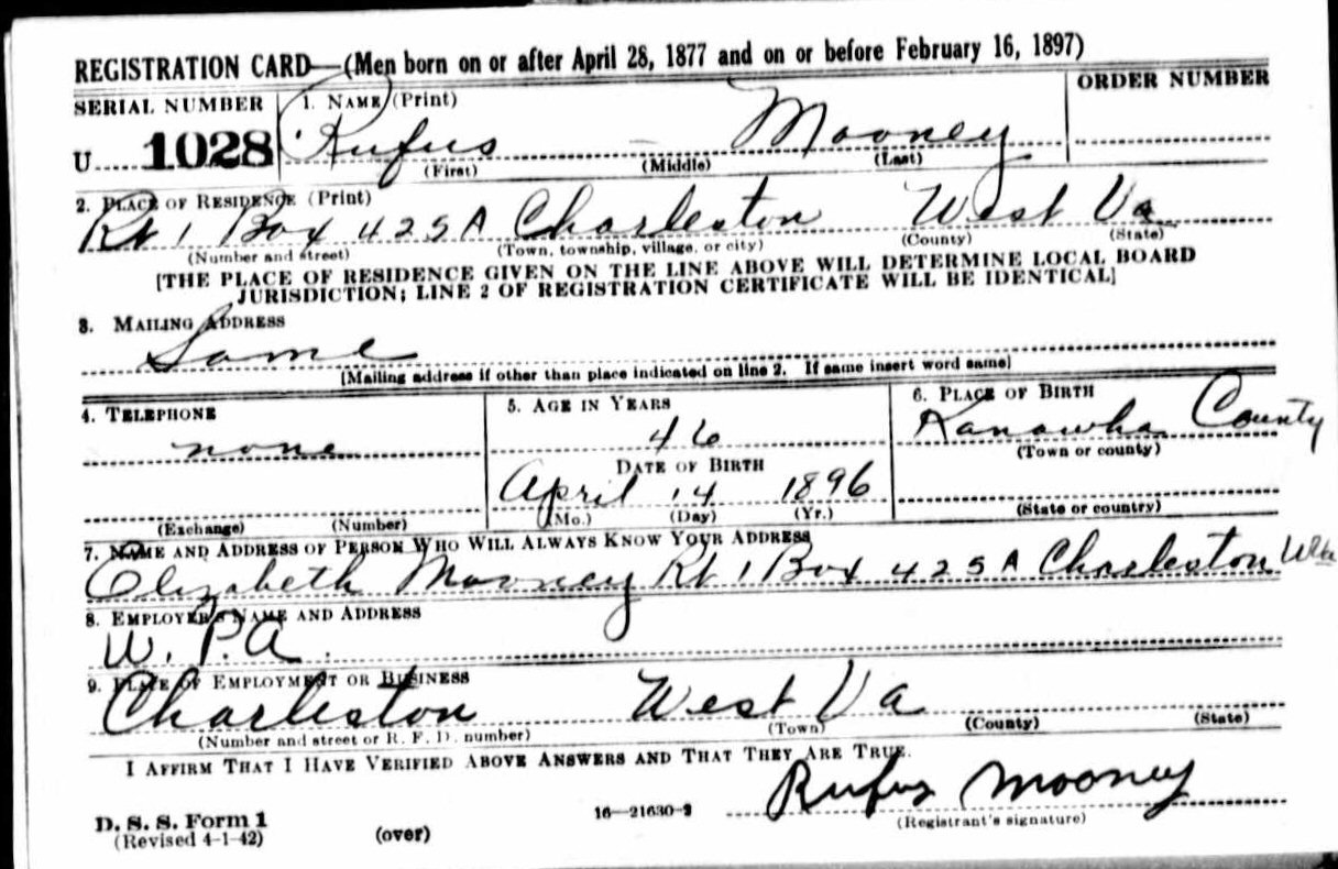 1942 - Rt 1 Box 425, Charleston, Kanawha County, West Virginia.
