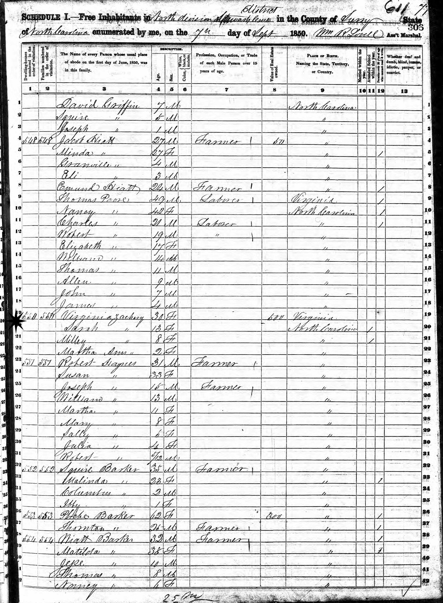 September 7, 1850 - Mt. Airy, Surry County, North Carolina.