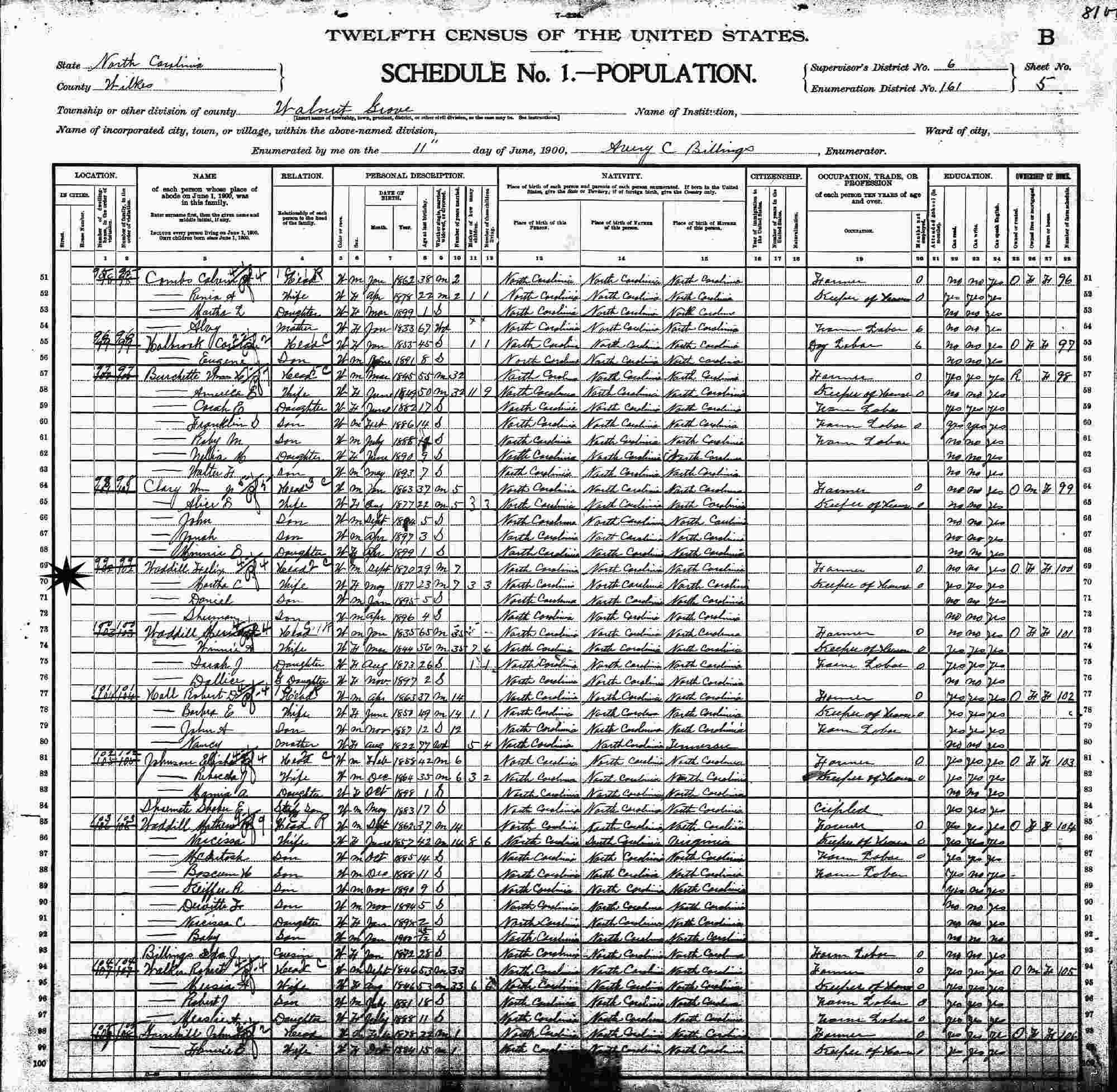 June 11, 1900 - Supervisor's District 6, Enumeration District 161, Walnut Grove, Wilkes County, North Carolina.