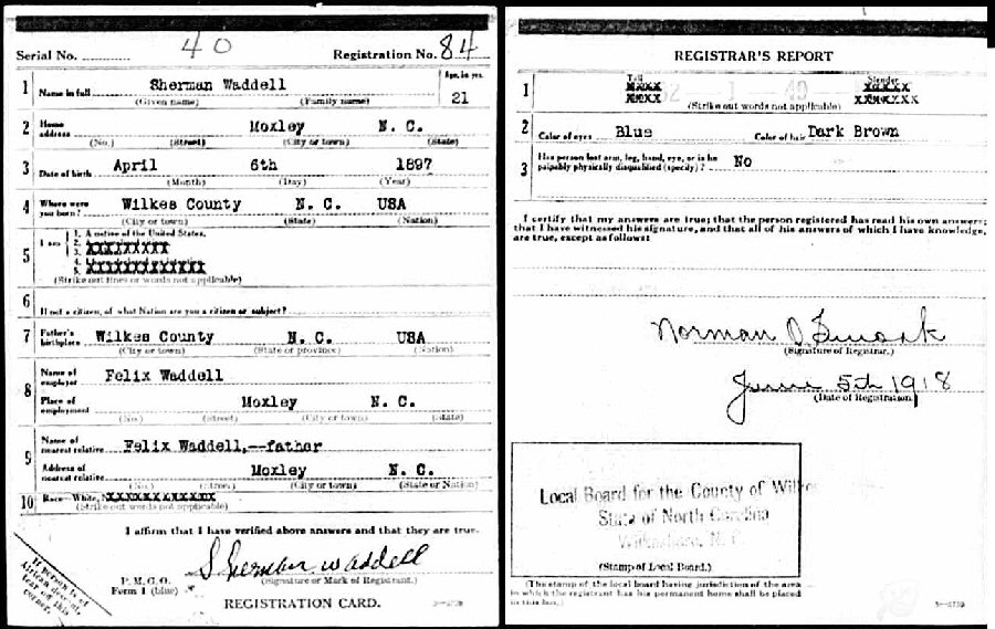 June 5, 1918 - Moxley, Wilkes County, North Carolina.