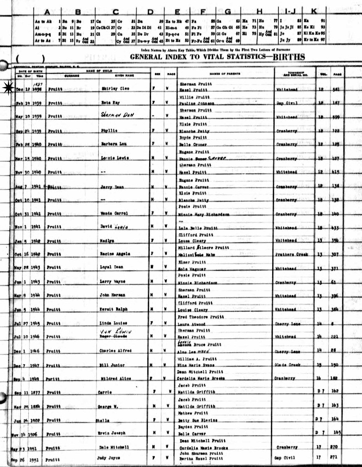 Daughter of John Sherman and Bertha Hazel (Pruitt) Pruitt.