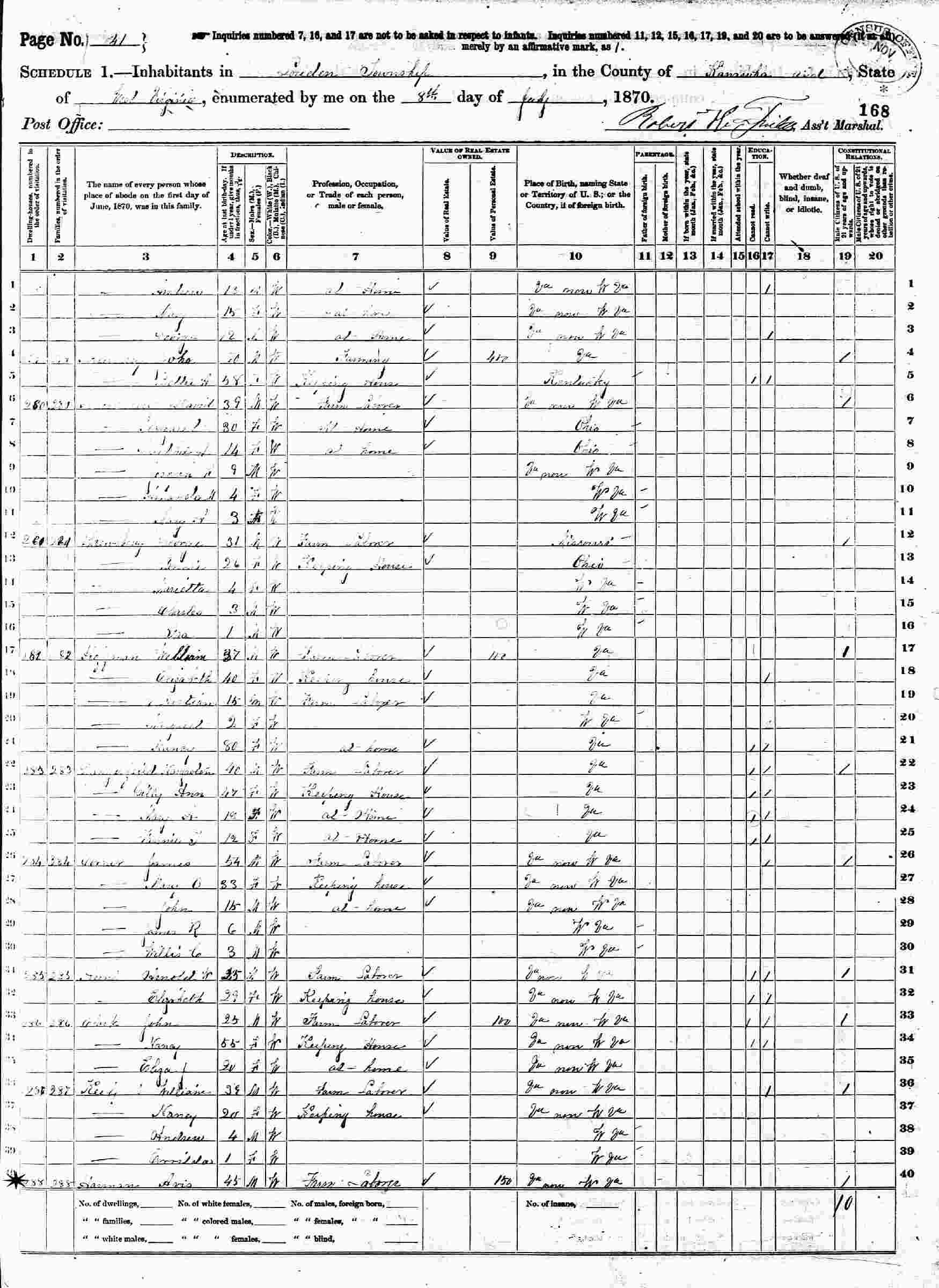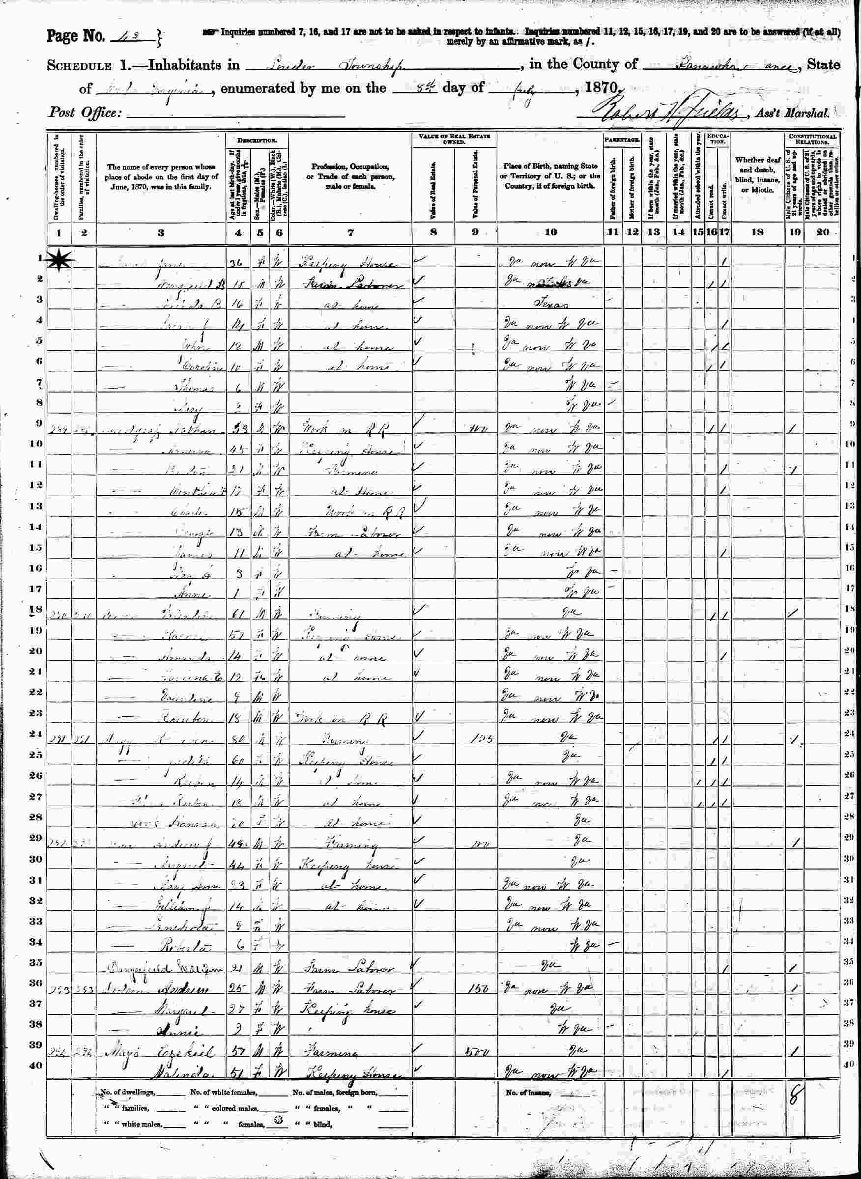June 14, 1880 - Supervisor's District 2, Enumeration District 60, Loudon District, Kanawha County, West Virginia.