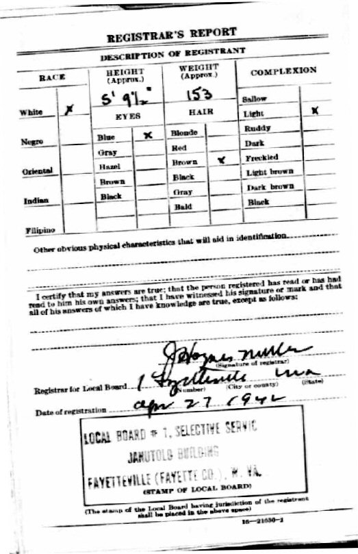Born: March 3, 1891 in Mill Creek, Kanawha County, West Virginia.