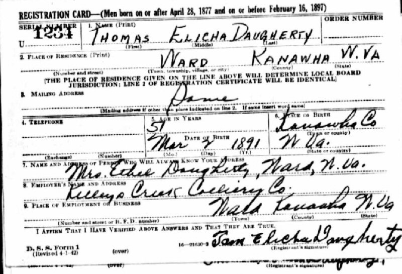 Notes for THOMAS ELICHA DAUGHERTY: