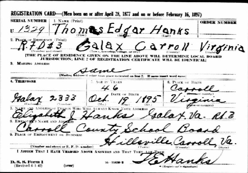 1942 - R.F.D. #3, Galax, Carroll County, Virginia.