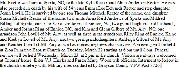 Son of Robert Kyle and Alma Mae (Anderson) Rector.
