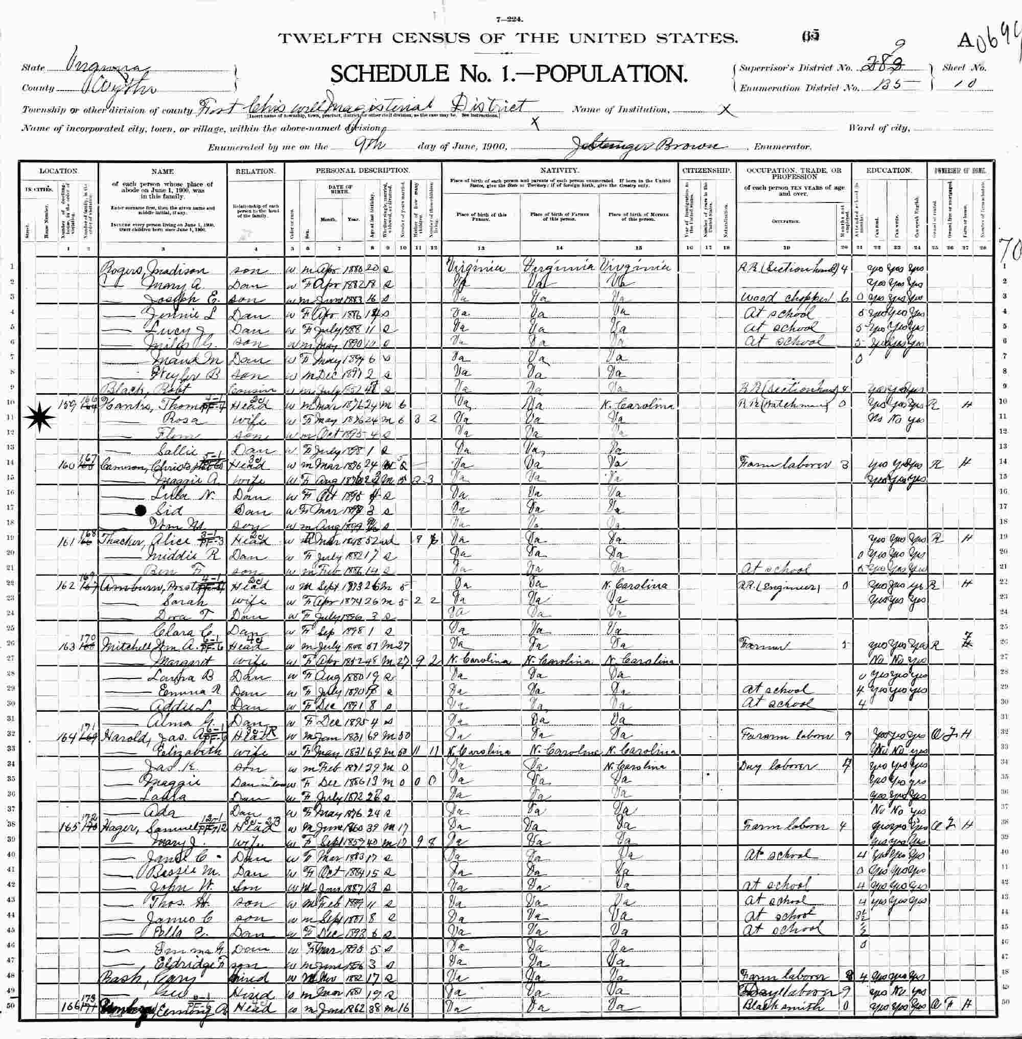June 9, 1900 - Supervisor's District 289 (crossed out to 9), Enumeration District 135, Fort Chiswell Magisterial District, Wythe County, Virginia.