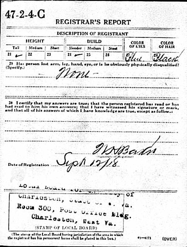 September 12, 1918 - 305 Kanawha, Charleston, Kanawha County, West Virginia.