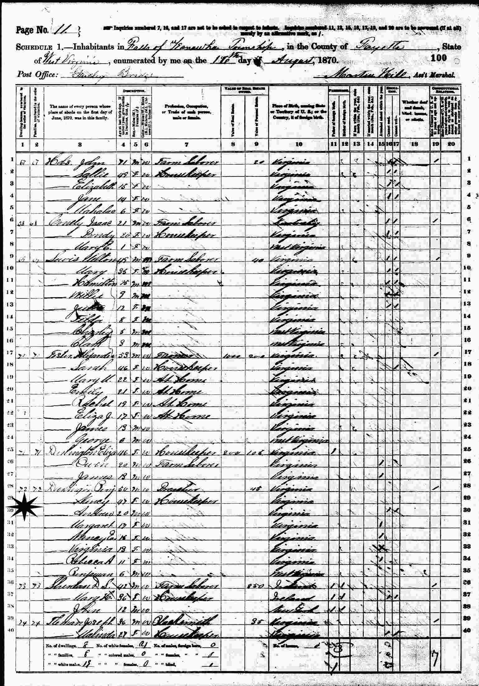 June 17, 1880 - Supervisor's District 2, Enumeration District 60, Loudon, Kanawha County, West Virginia.