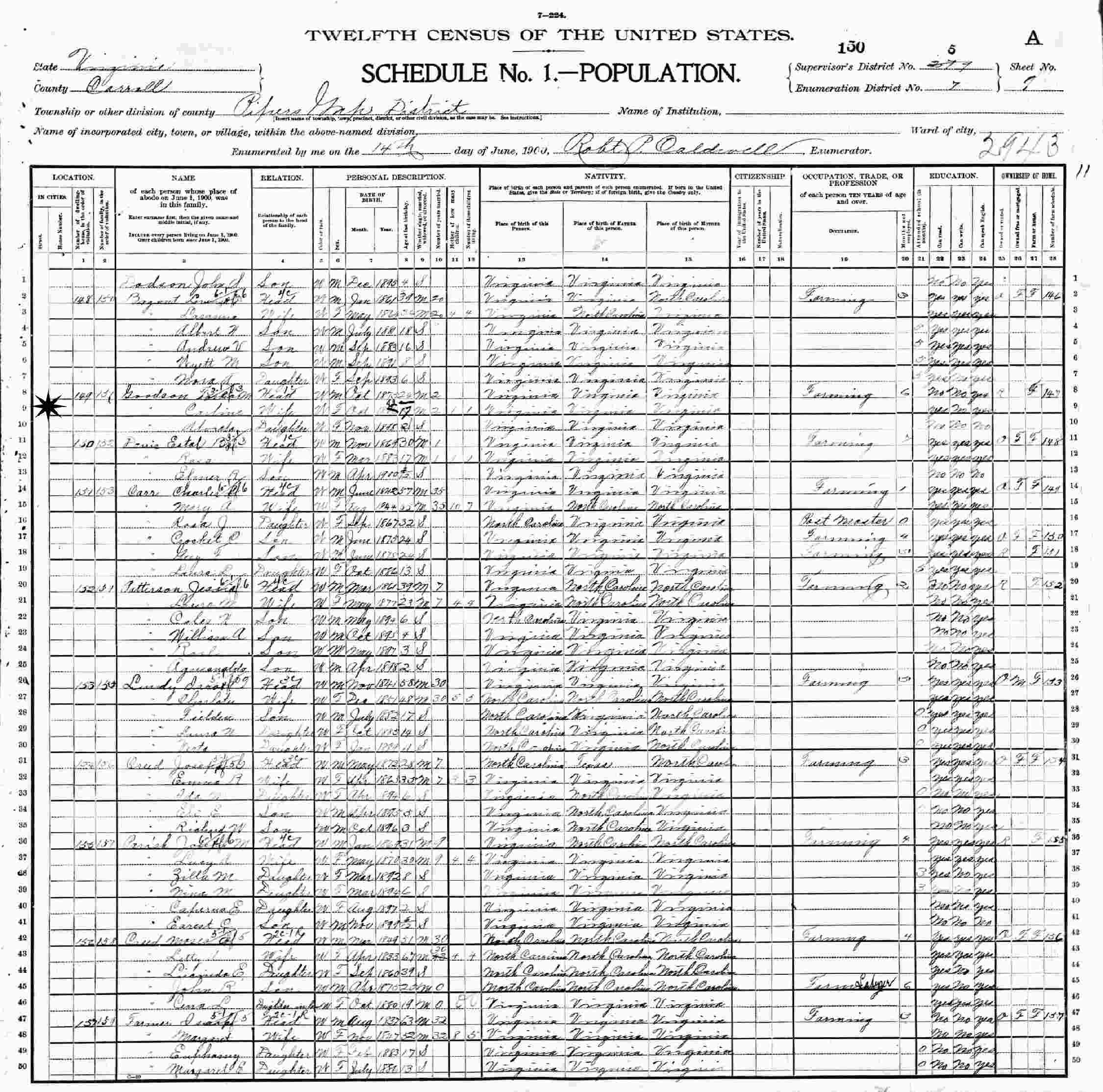 June 10, 1900 - Pipers Gap District, Supervisor's District 279, Enumeration District 7, Carroll County, Virginia.