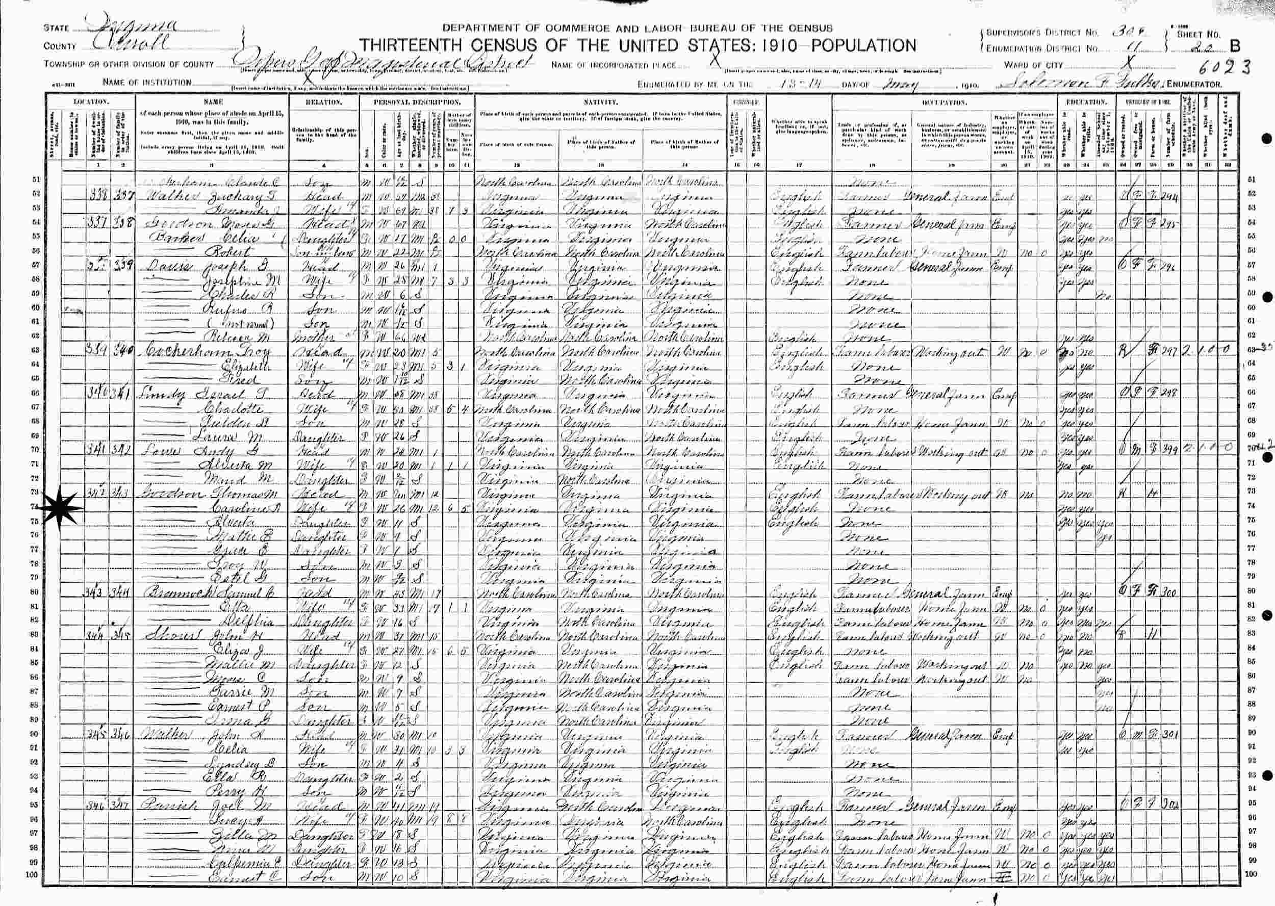May 13-14, 1910 - Supervisor's District 306, Enumeration District 11, Pipers Gap Magisterial District, Carroll County, Virginia.