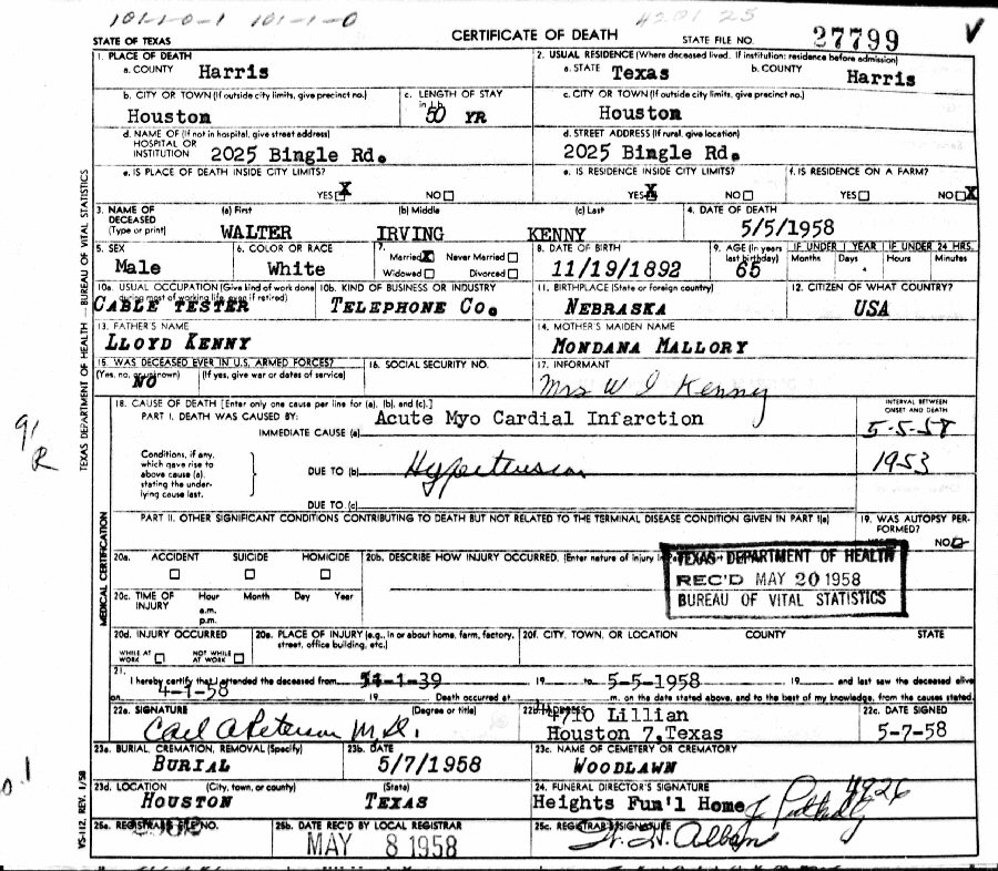 Died: May 05, 1958 in Houston, Harris County, Texas.