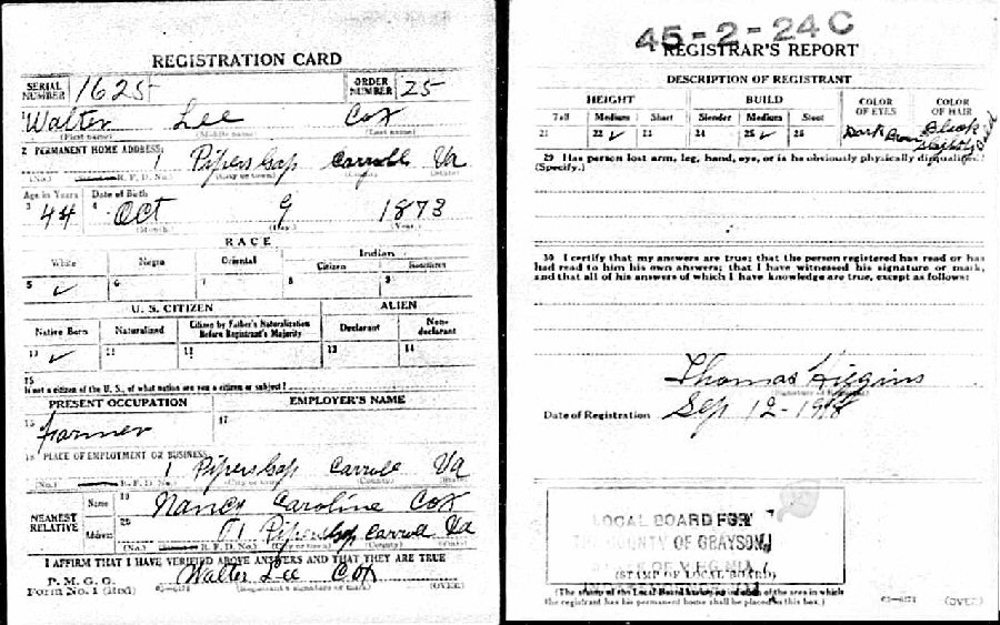 Notes for WALTER LEE COX: