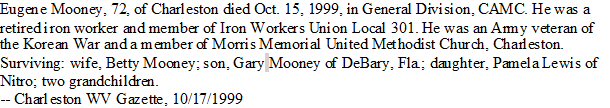 Died: October 15, 1999 in Charleston, Kanawha County, West Virginia.