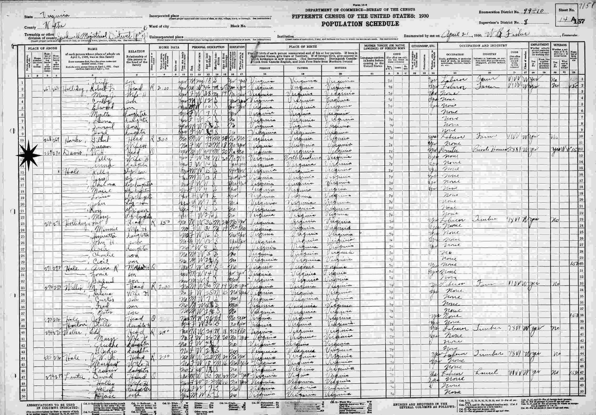 April 21, 1930 - Supervisor's District 8, Enumeration District 99-10, Speedwell, Wythe County, Virginia.