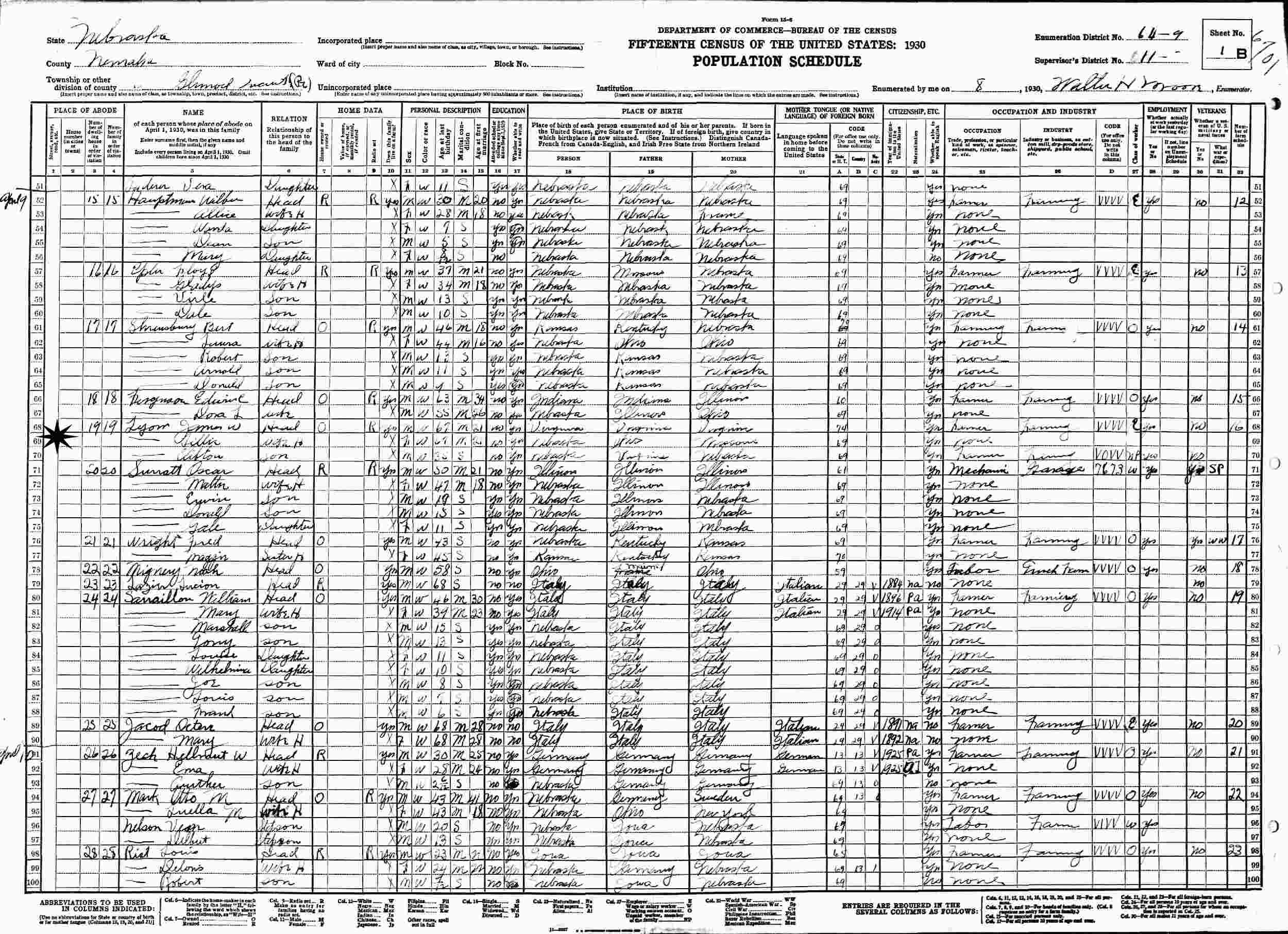 1930 - Supervisor's District 11, Enumeration District 64-9, Glen Rock, Nemaha County, Nebraska.
