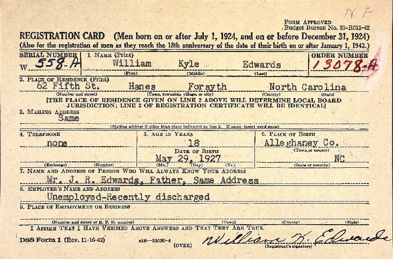 1942 - 62 Fifth Street, Hanes, Forsyth County, North Carolina.