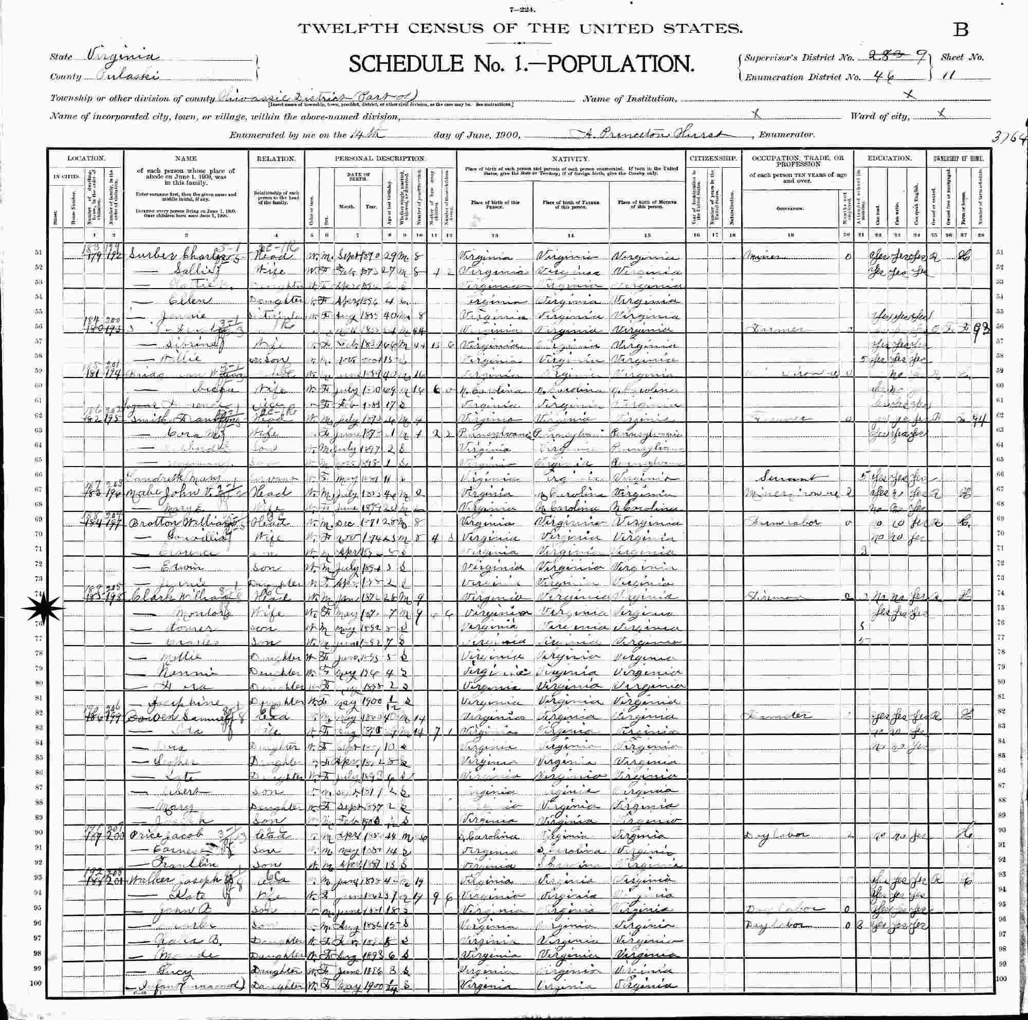 June 14, 1900 - Supervisor's District 283, Enumeration District 46, Hiwassee District, Pulaski County, Virginia.