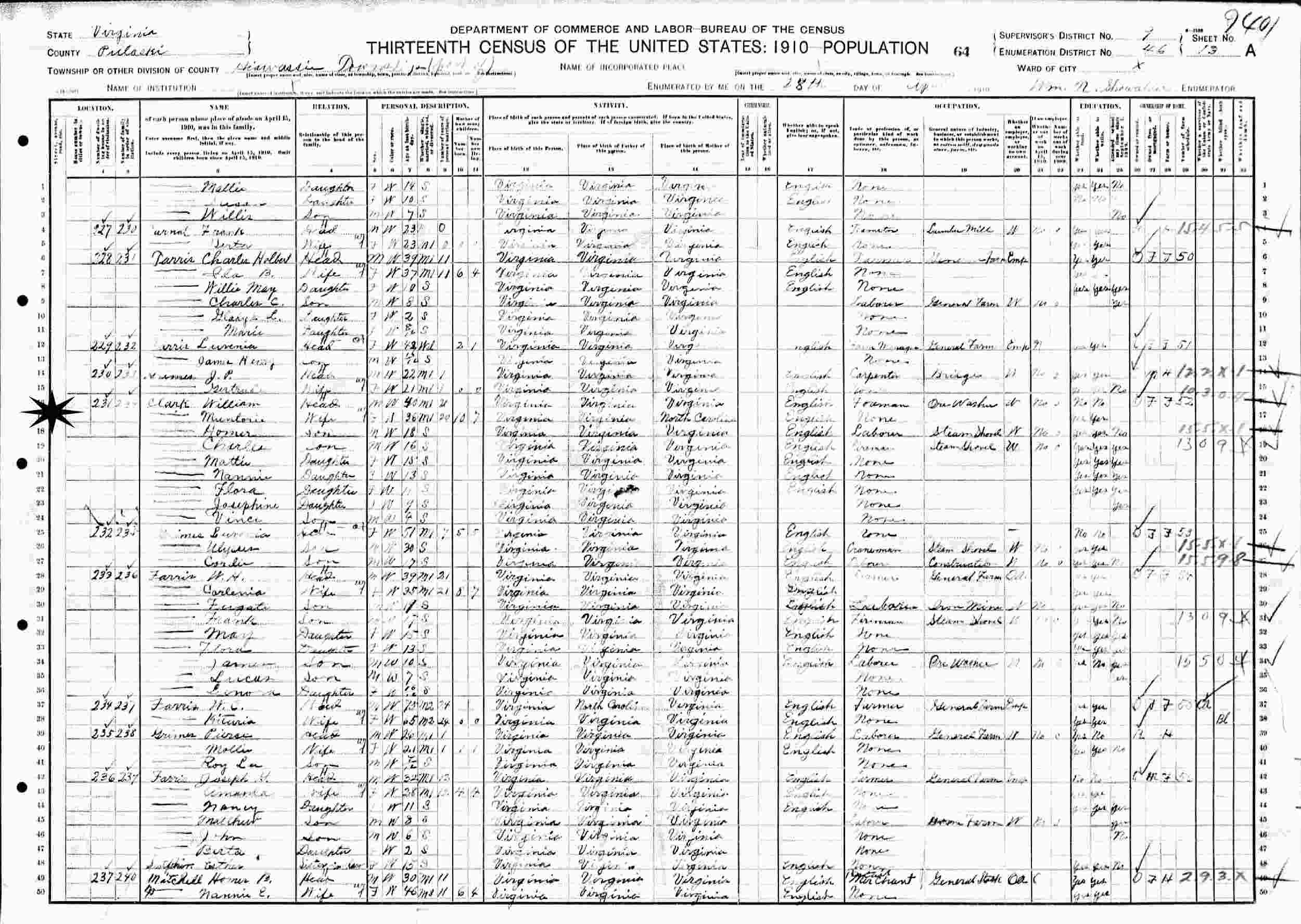 April 18, 1910 - Supervisor's District 9, Enumeration District 46, Hiawassie District, Pulaski County, Virginia.