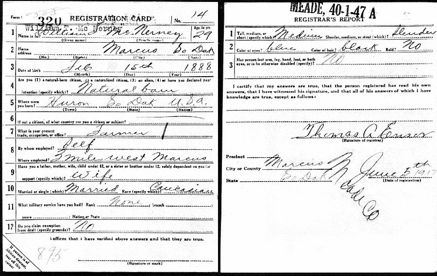 June 5, 1917 - Marcus, Meade County, South Dakota.