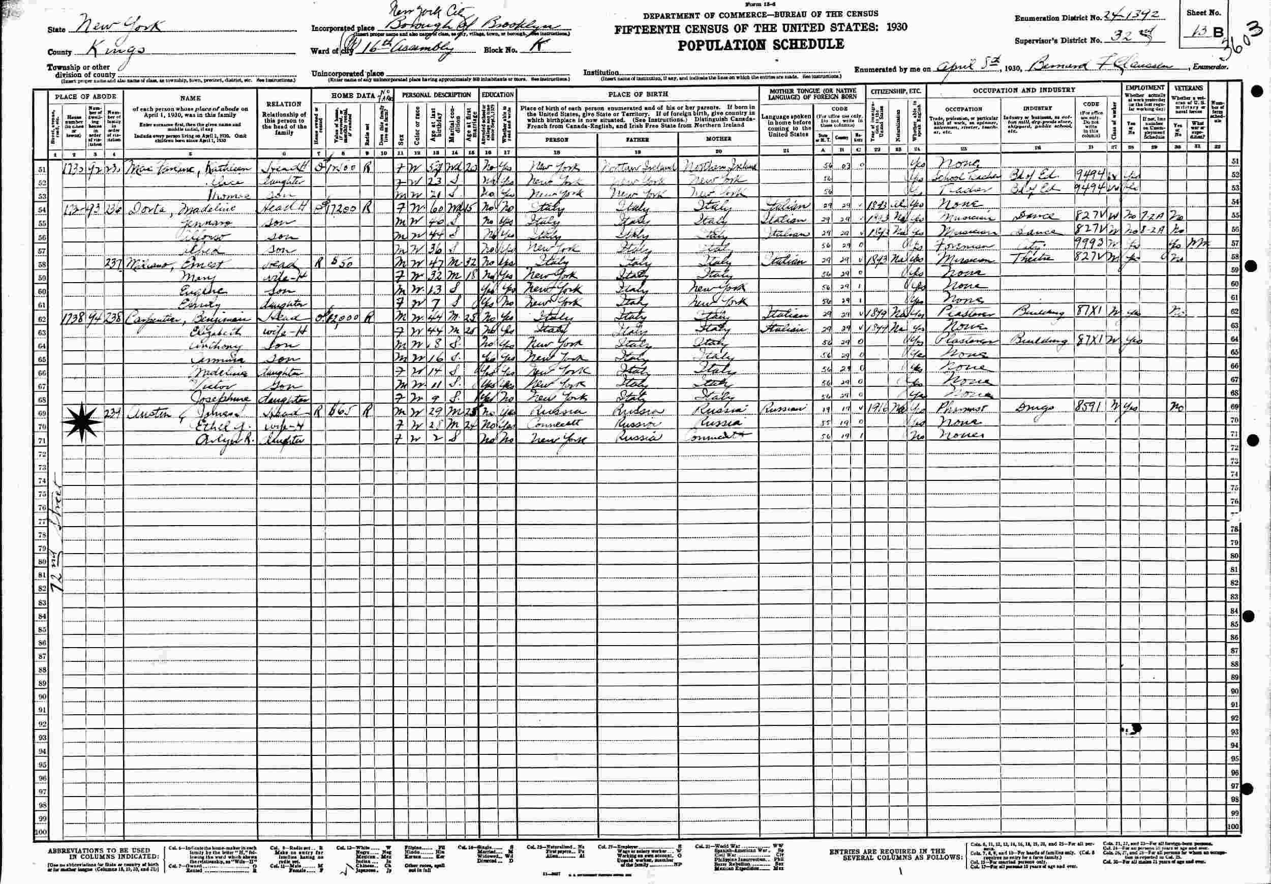 April 8, 1930 - 1736 72nd Street, Assembly District 16, Block K, Supervisor's District 32, Enumeration District 24-1392, Brooklyn, Kings County, New York.