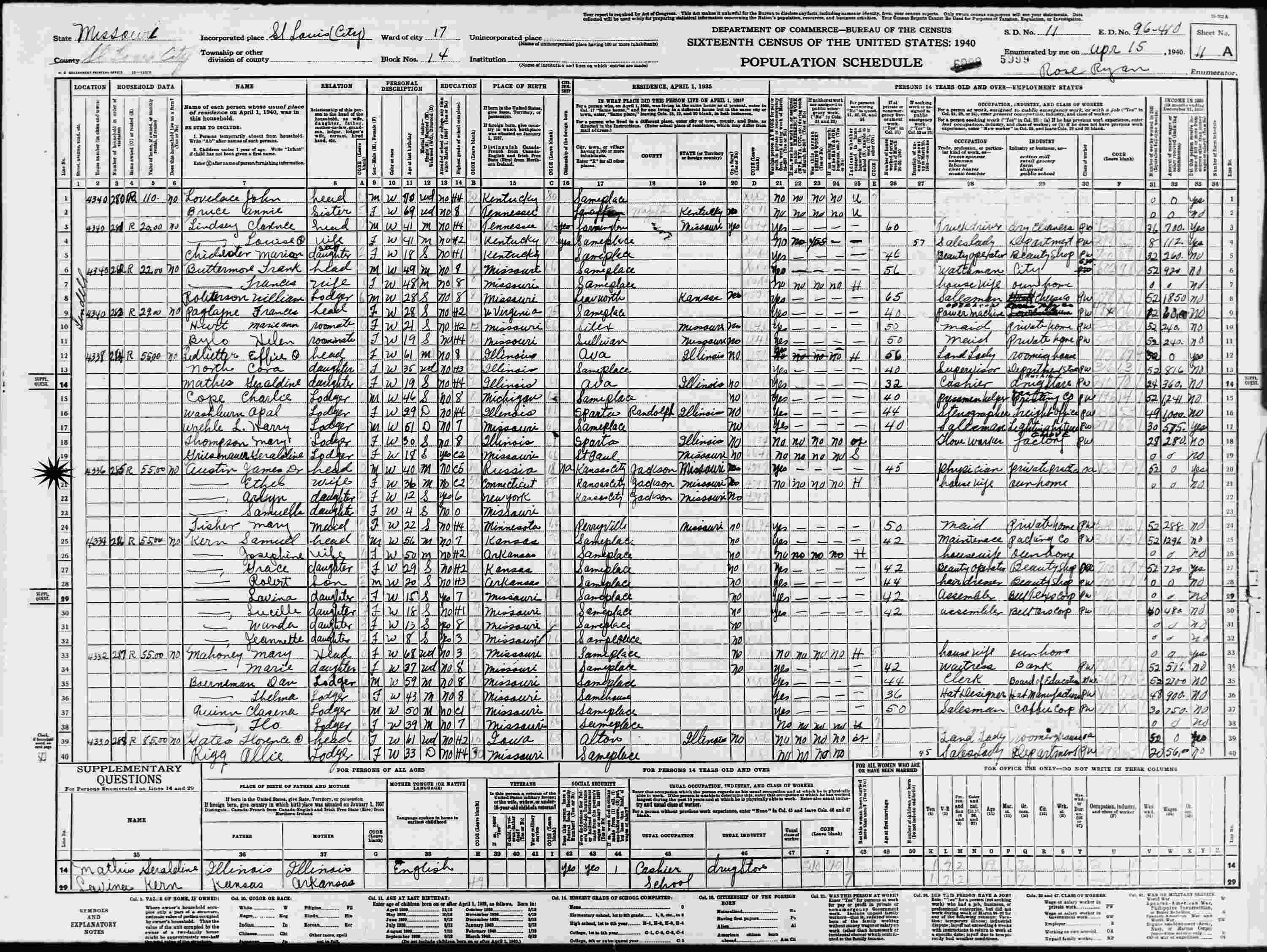 April 15, 1940 - 4336 Lindell, Ward 17, St. Louis, St. Louis, Missouri.