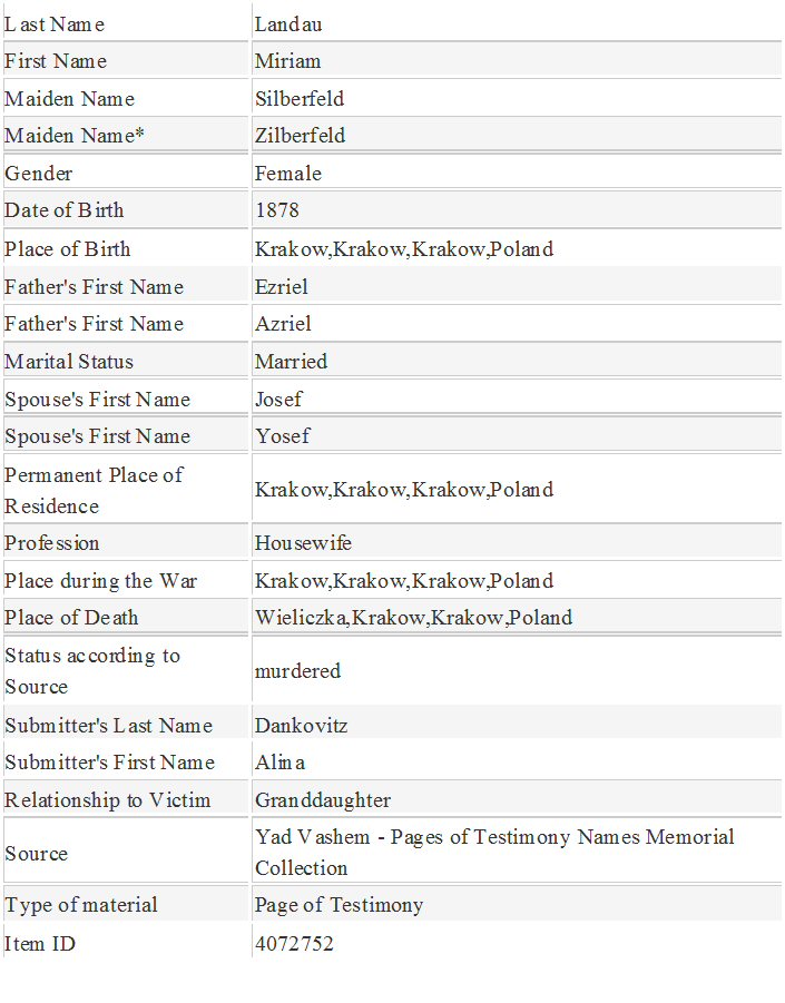 Married: Jozef Landau 1895 in Unknown (probably Krakow, Poland).
