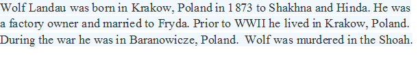 Married: Fryda/Fryderyka Shakht in 1897 in Krakow, Poland.