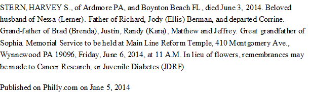 Buried: June 6, 2014 in probably Wynnewood, Pennsylvania.