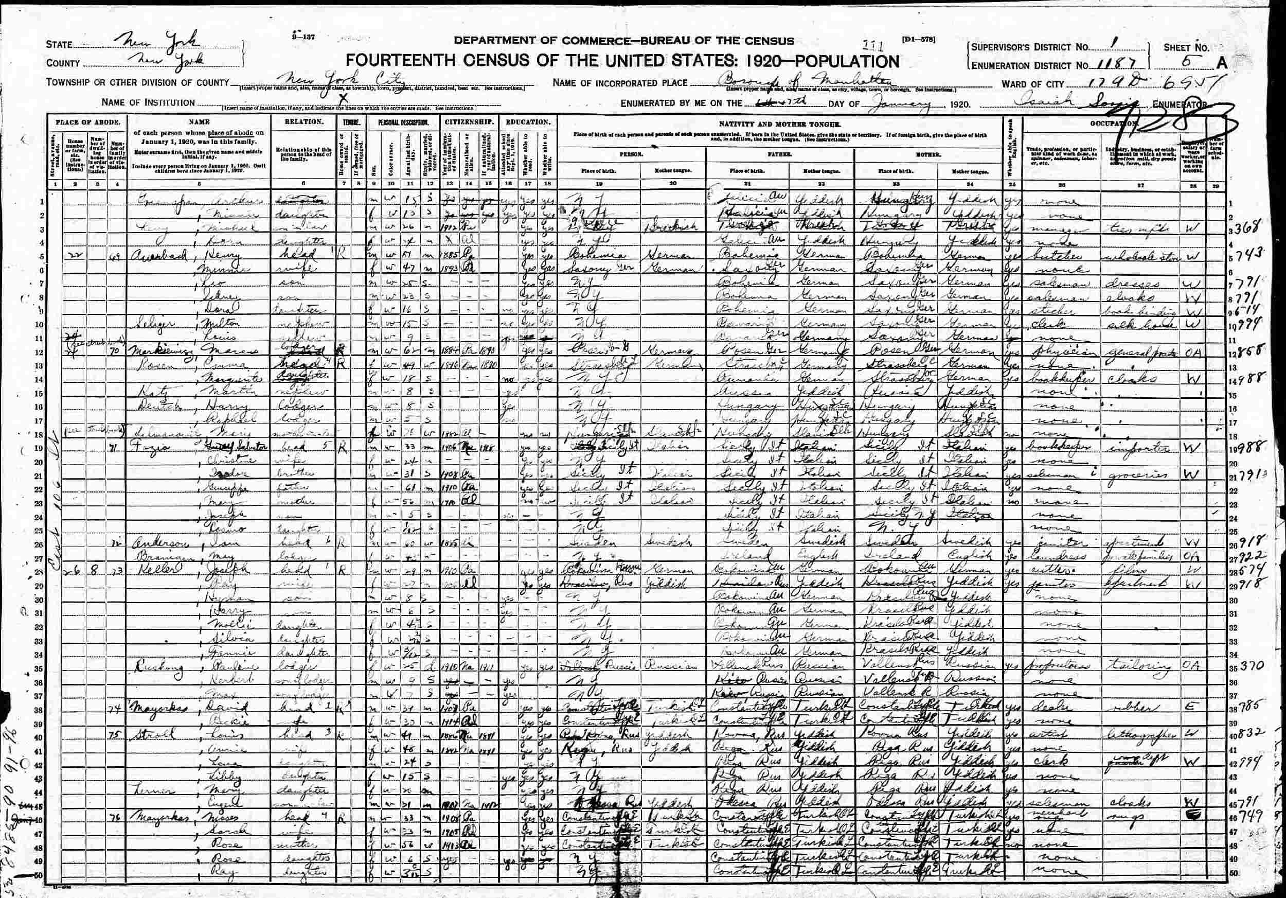 January 7, 1920 - 26 East 106 Street Assembly District 17, Supervisor's District 1, Enumeration District 1187, Manhattan, New York (w/parents).