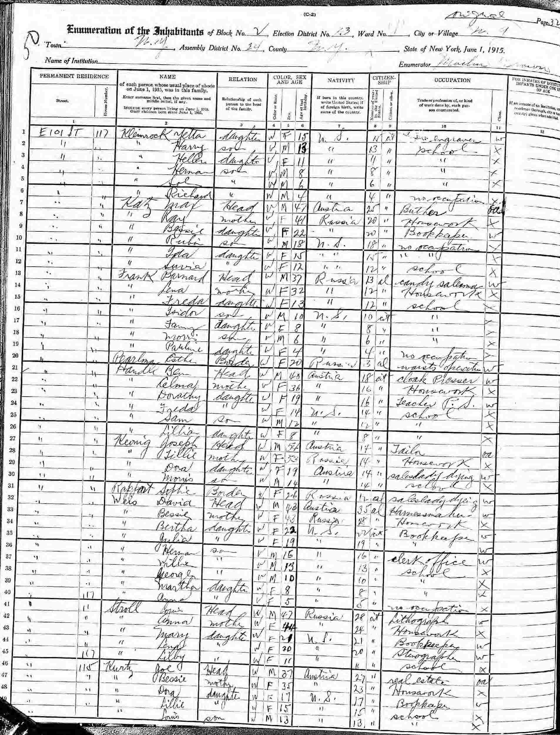 June 1, 1915 - New York State - 117 E 101 Street, Assembly District 24, Block 2, Election District 13, New York City, New York.